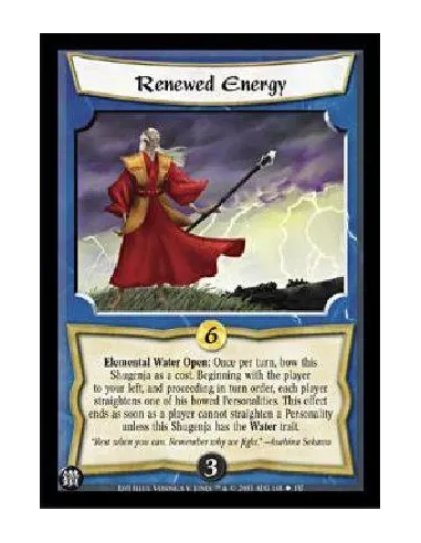 Elemental Water Open: Once per turn, bow this Shugenja as a cost. Beginning with the player to your left, and proceeding in turn order, each player straightens one of his bowed Personalities. This effect ends as soon as a player cannot straighten a Personality unless this Shugenja has the Water trait.