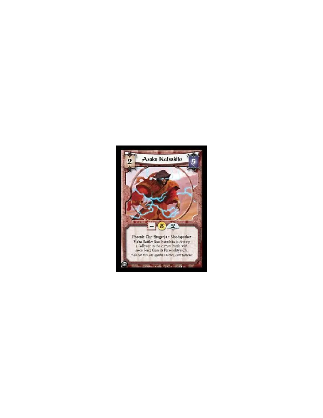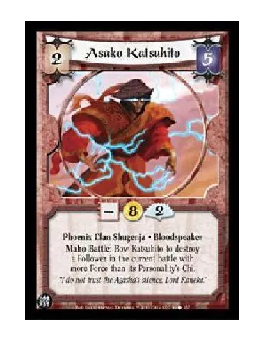 Phoenix Clan Shugenja. Bloodspeaker Maho Battle: Bow Katsuhito to destroy a Follower in the current battle with more Force than its Personality's Chi.