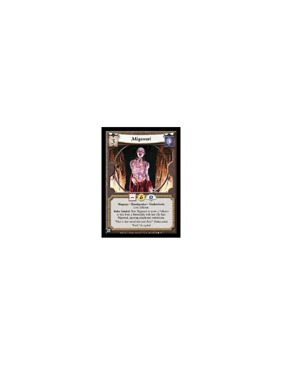 Shugenja · Bloodspeaker · ShadowlandsLose 3 Honor.Maho Limited: Bow Migawari to move a Follower to him from a Personality with less Chi than Migawari, ignoring attachment restrictions.