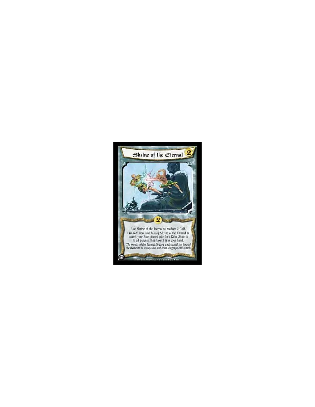 Bow Shrine of the Eternal to produce 2 Gold.Limited: Bow and destroy Shrine of the Eternal to search your Fate discard pile for a Kiho. Show it to all players, then take it into your hand.