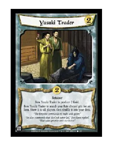 RetainerBow Yasuki Trader to produce 2 Gold.Bow Yasuki Trader to search your Fate discard pile for an Item. Show it to all players, then shuffle it into your deck.