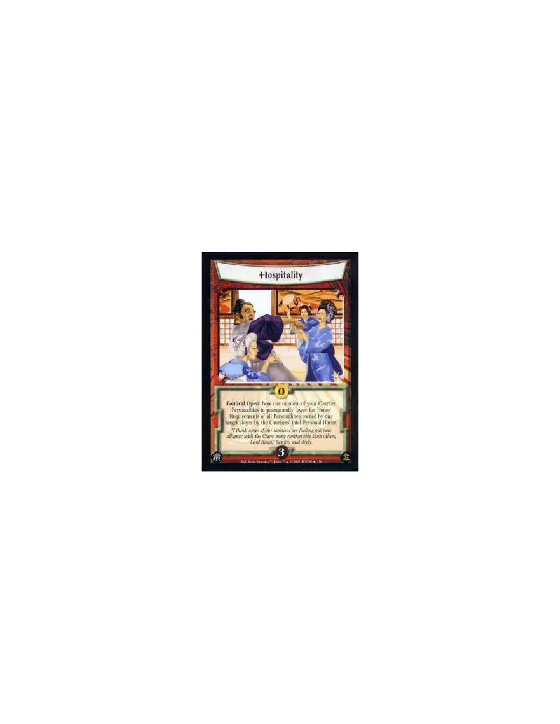 Political Open: Bow one or more of your Courtier Personalities to permanently lower the Honor Requirements of all Personalities owned by one target player by the Courtiers' total Personal Honor.