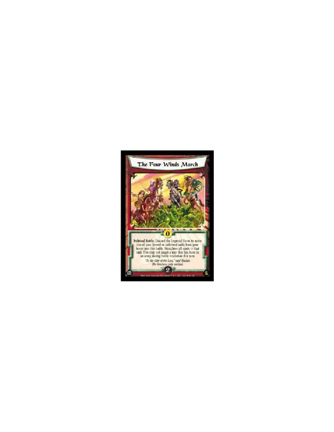 Political Battle: Discard the Imperial Favor to move one of your bowed or unbowed units from your home into this battle. Straighten all cards in that unit. This may not target a unit that has been in an army during battle resolution this turn.