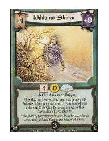 Crab Clan Ancestor * Unique After this card enters play, you may place a 0F Follower token on a number of your bowed and unbowed Crab Clan Personalities up to this Personality's Force plus Yu.