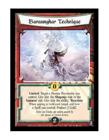 Limited: Target a Human Personality you control. Give him the Shugenja trait or the Samurai trait. Give him the ability, ?Reaction: When paying a Gold cost, target and bow a Spell you control: Produce 2 Gold