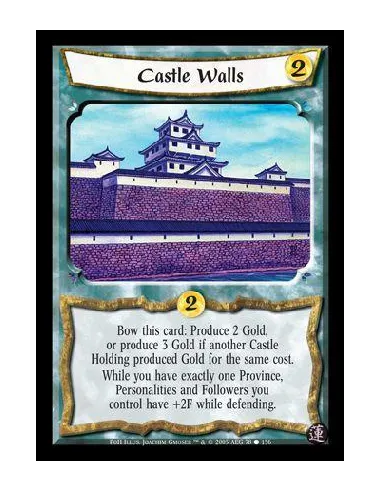 Bow this card: Produce 2 Gold, or produce 3 Gold if another Castle Holding produced Gold for the same cost. While you have exactly one Province, Personalities and Followers you control have +2F while defending