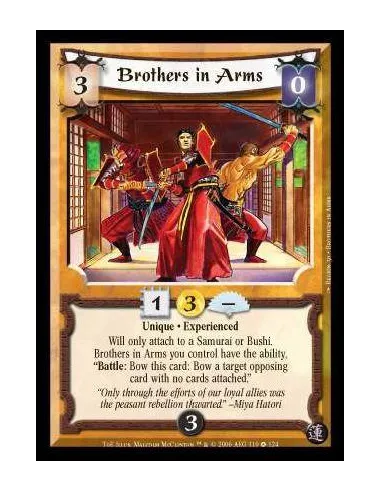 Unique · Experienced. Can only attach to a Samurai. Your Brothers in Arms have the ability, "Battle: Bow this card: Bow a target card opposing it with no attachments."