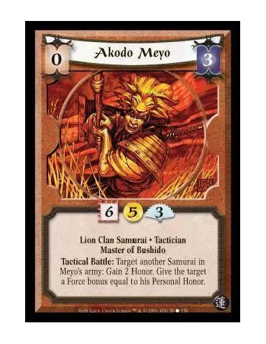 Lion Clan Samurai · Tactician · Master of Bushido. Tactical Battle: Target another Samurai in Meyo's army: Gain 2 Honor. Give the target a Force bonus equal to his Personal Honor.