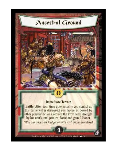 Terrain Battle: After each time another player’s action moves home, bows, or destroys one of your opposed Personalities at this battlefield: Reduce the province’s strength by his unit’s total Force before the effect was applied and gain 2 Honor.