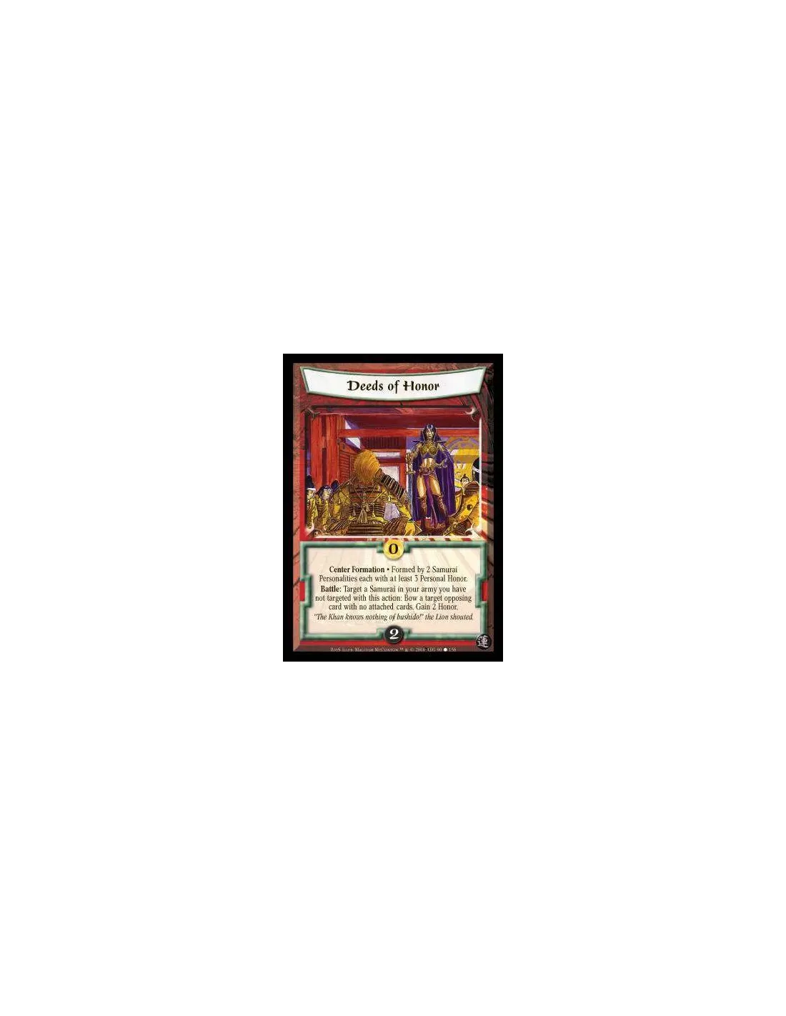 Center Formation · Formed by 2 Samurai Personalities each with at least 3 Personal Honor. Battle: Target a Samurai in your army you have not targeted with this action: Bow a target opposing card with no attached cards. Gain 2 Honor.