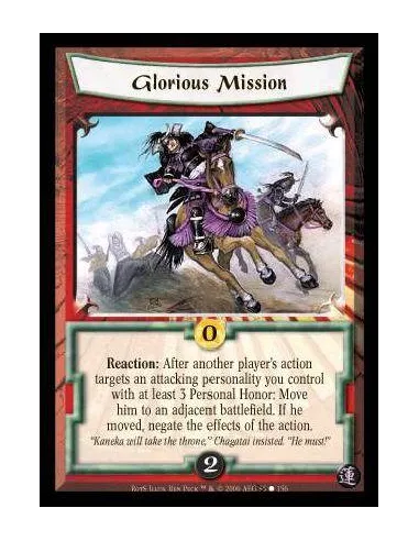 Reaction: After another player’s action targets an attacking personality you control with at least 3 Personal Honor: Move him to an adjacent battlefield. If he moved, negate the effects of the action.