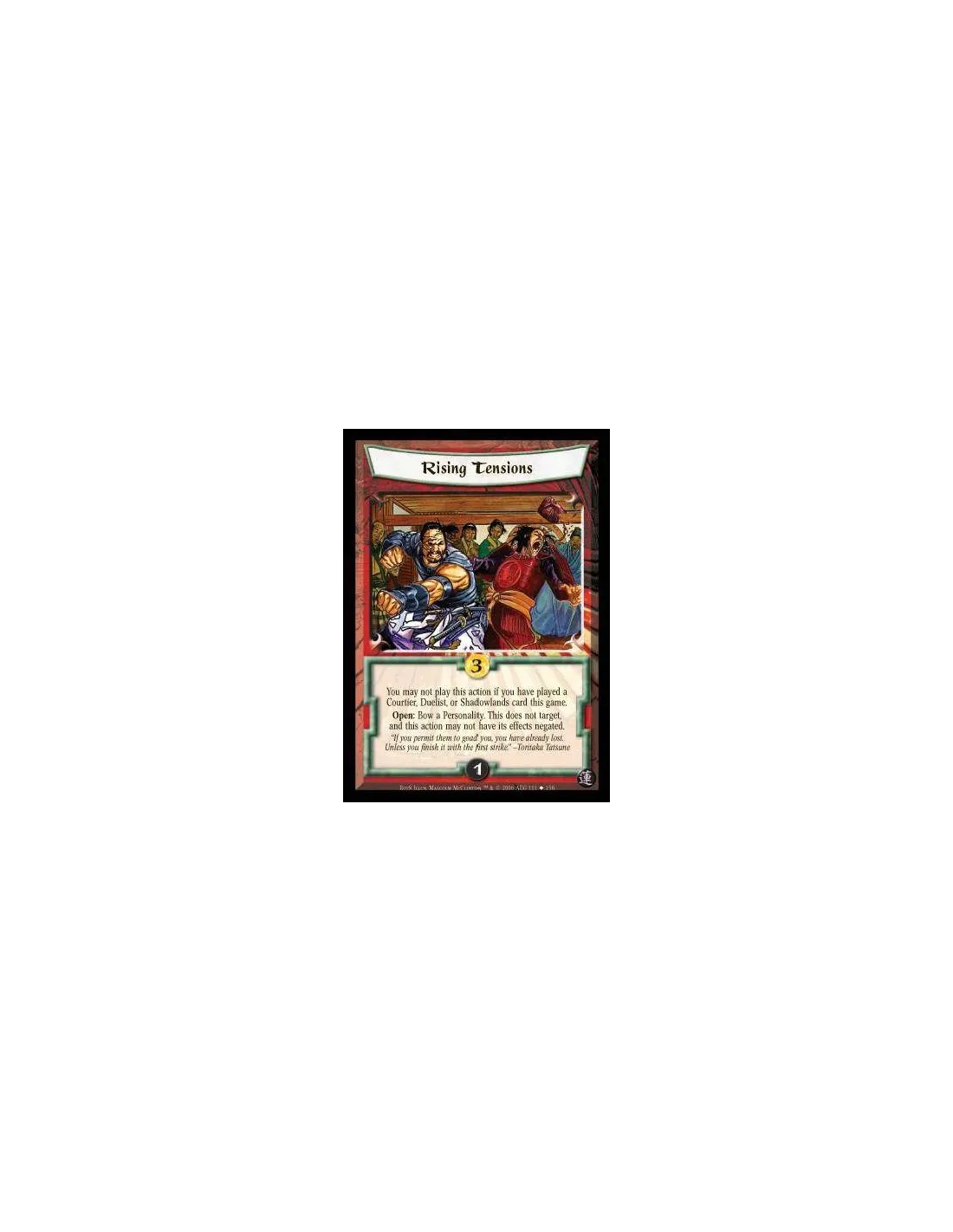 You may not play this action if you have played a Courtier, Duelist or Shadowlands card this game. Open: Bow a Personality. This does not target, and this action may not have its effects negated.