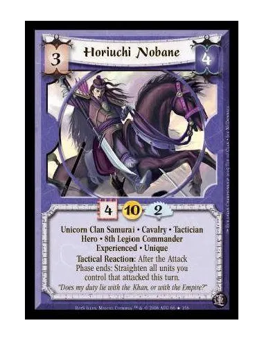 Unicorn Clan Samurai · Cavalry · Tactician · Hero · 8th Legion Commander · Experienced · Unique. Tactical Reaction: After the Attack Phase ends: Straighten all units you control that attacked this turn.