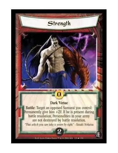 Dark Virtue Battle: Target one of your opposed Samurai: Give him +2F token. The current battle's resolution can not destroy cards in his unit.