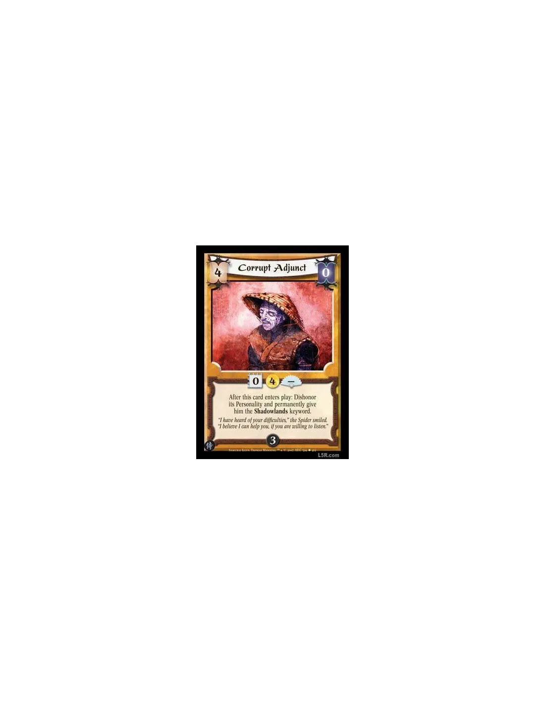 After this card enters play: Dishonor its Personality and permanently give him the Shadowlands keyword.