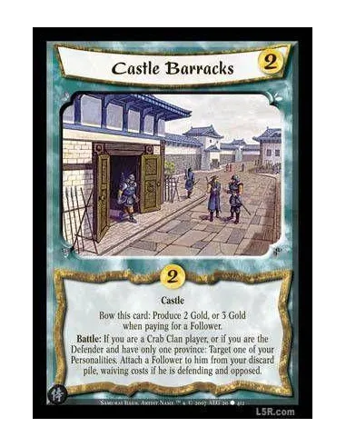 Castle Bow this card to produce 2 Gold, or 3 Gold if paying when a Follower. Battle: If you are a Crab Clan player or if you are the Defender and have only one province: Target one of your Personalities. Attach a Follower to him from your discard pile, waiving costs if he is defending and opposed.