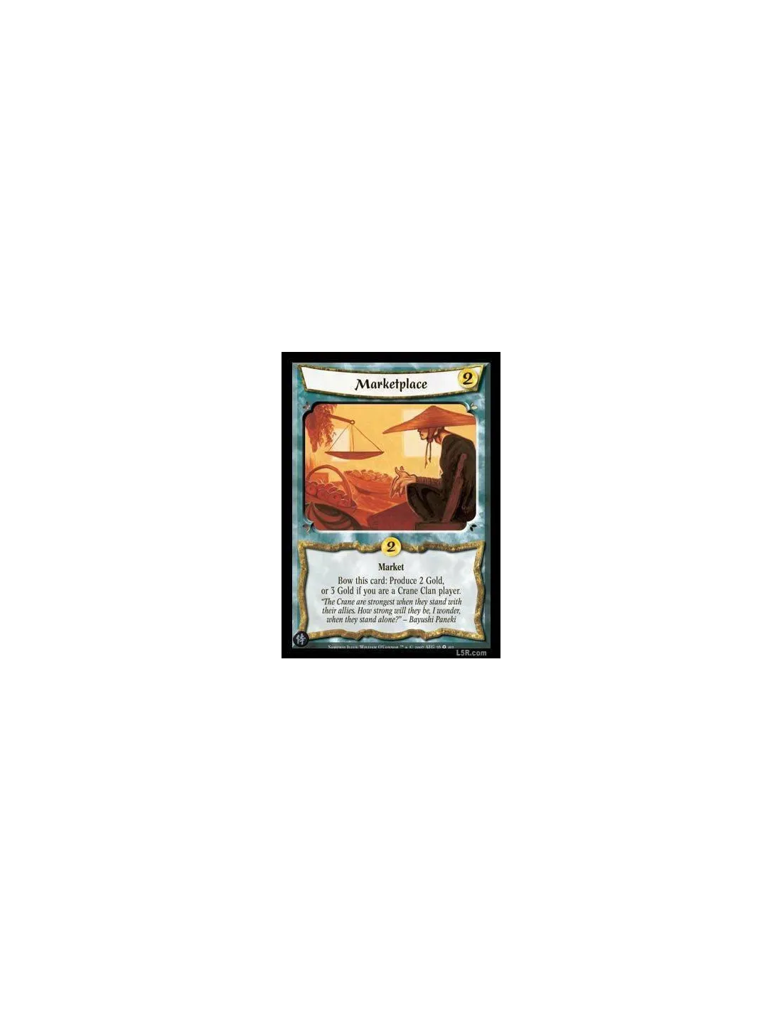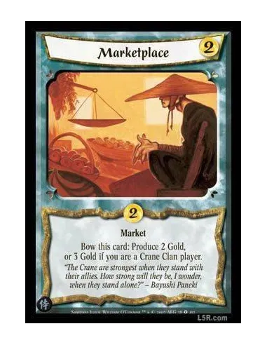 Market. Bow this card: Produce 2 Gold, or 3 Gold if you are a Crane Clan player.