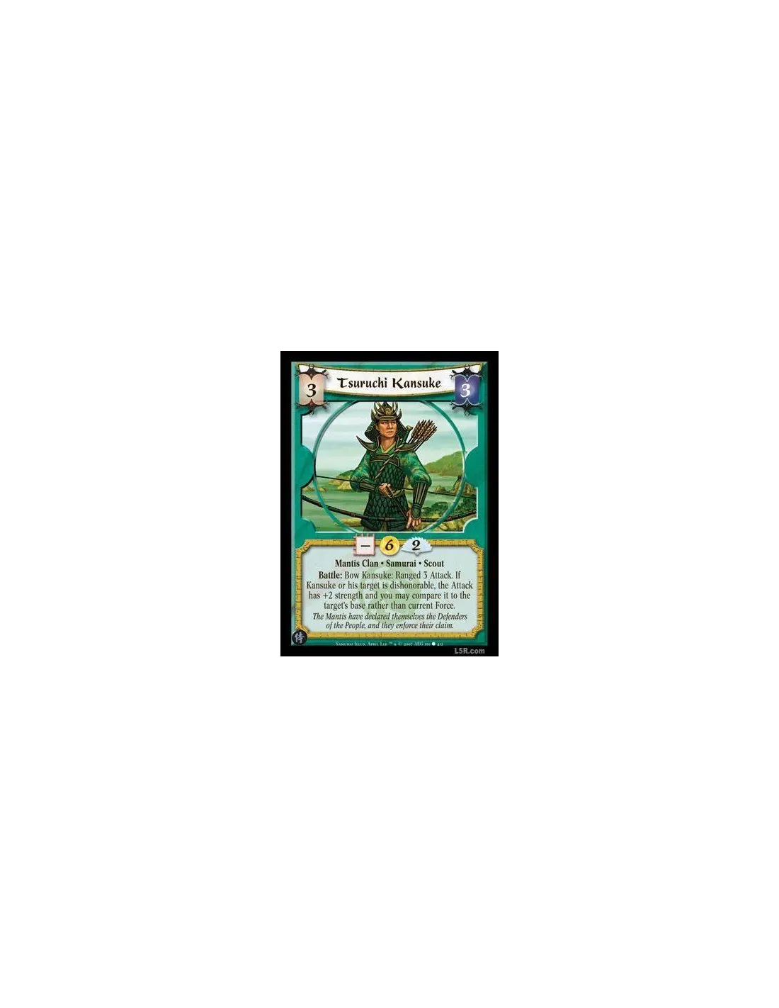 Mantis Clan · Samurai · Scout. Battle: Bow Kansuke: Ranged 3 Attack. If Kansuke or his target is dishonorable, the Attack has +2 strength and you can compare it to the target's base rather than current Force