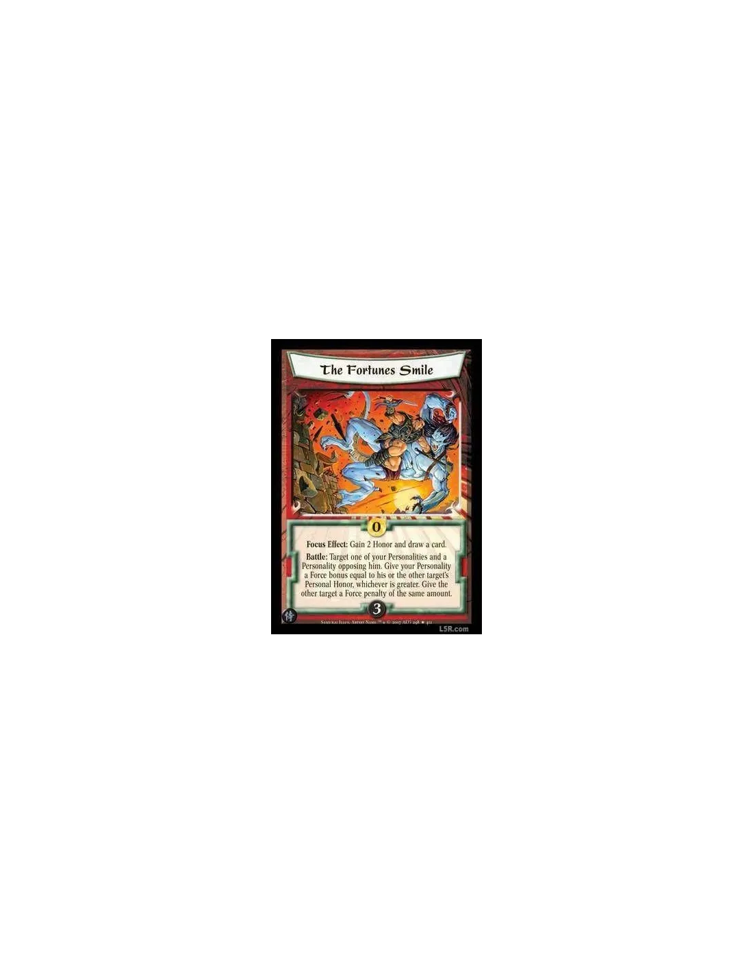 Focus Effect: Gain 2 Honor and draw a card. Battle: Target one of your Personalities and a Personality opposing him: Give your Personalty a force Bonus equal to his or the other target's Personal Honor, wichever is greater. Give the other target a Force penaltyof the same amount.