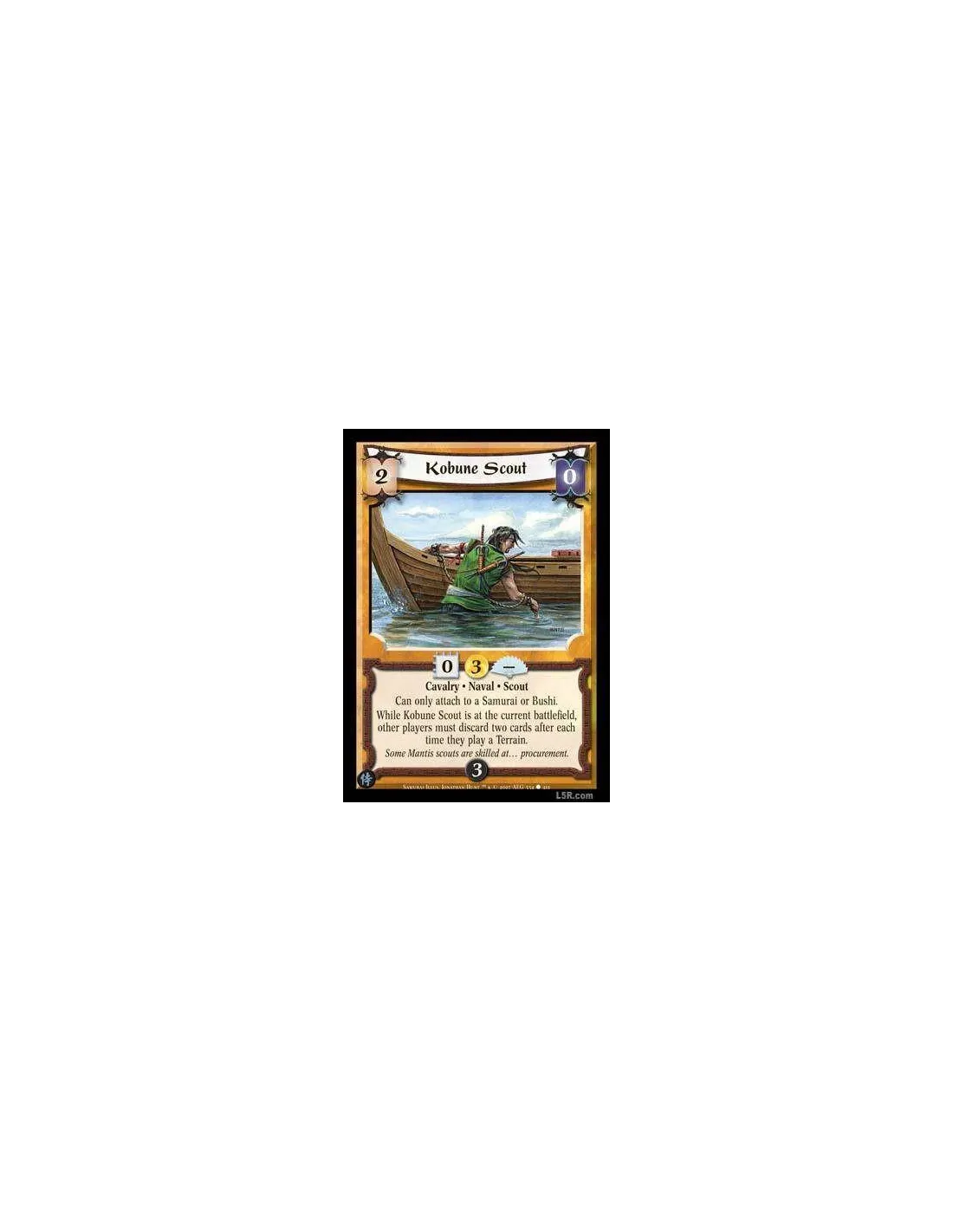 Cavalry · Naval · Scout Can only attach to a Samurai or Bushi.While Kobune Scout is at the current battlefield, other players must discard two cards after each time they play a Terrain.