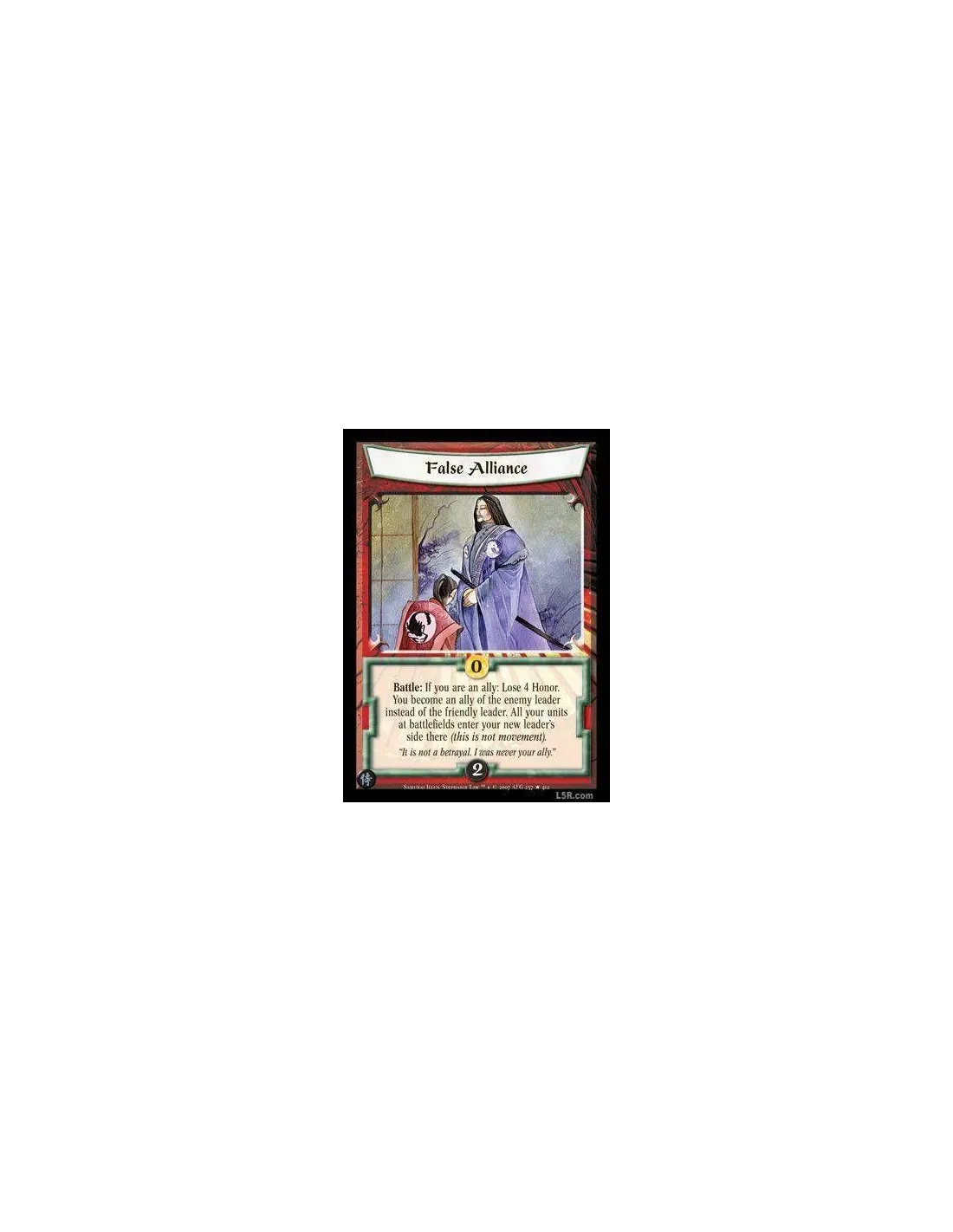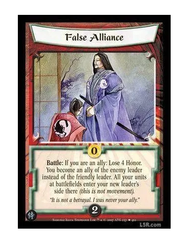 Battle : If you are an ally: Lose 4 Honor. You become an ally of the enemy leader instead of the friendly leader. All your units at battlefields enter your new leader's side there (this is not movement).