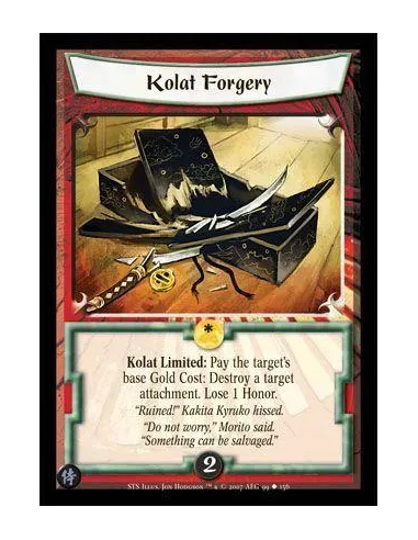 Kolat Limited: Pay the target's base Gold Cost: Destroy a target attachment. Lose 1 Honor