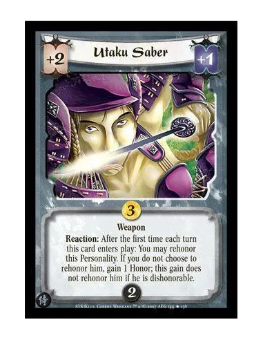 Weapon. Reaction: After the first time each turn this card enters play: You may rehonor this Personality. If you do not choose to rehonor him, gain 1 Honor; this gain does not rehonor him if he is dishonourable.