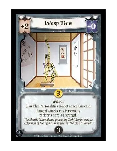Weapon. Lion Clan Personalities cannot attach this card. Ranged Attacks this Personality performs have +1 strength