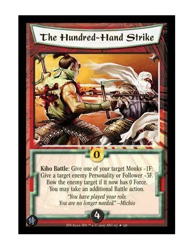 Kiho Battle: Give one of yor target Monks -1F: Give a target enemy Personality -3F. Bow the enemy target if it now has 0 Force. You may take an additiona Battle action.