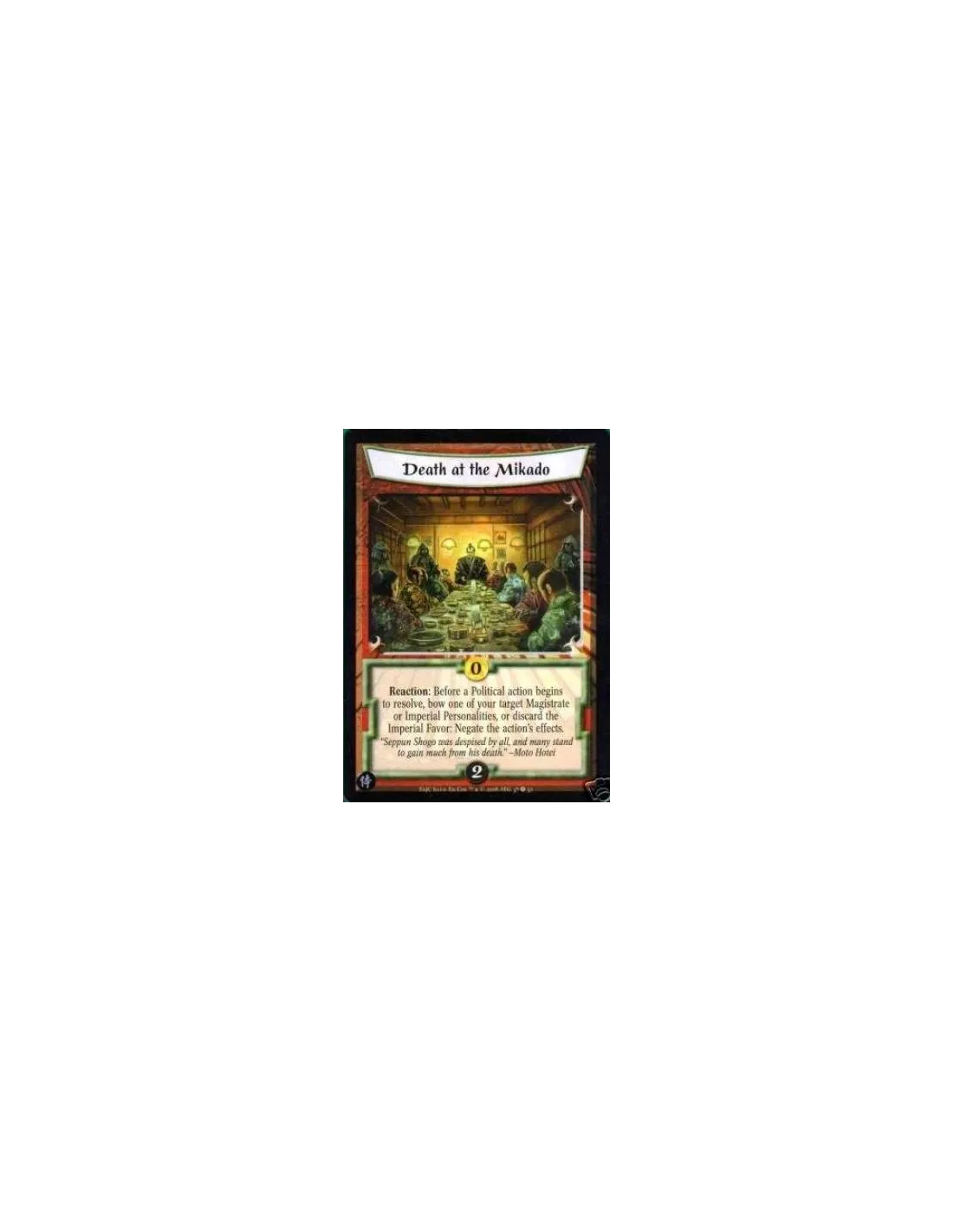 Reaction: Before a Political action begins to resolve, bow one of your target Magistrate or Imperial Personalities, or discard the Imperial Favor: Negate the action’s effects.