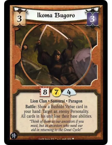 Lion Clan • Samurai • Paragon Battle: Show a Bushido Virtue card in your hand: Target an enemy Personality. All cards in his unit lose their base abilities.