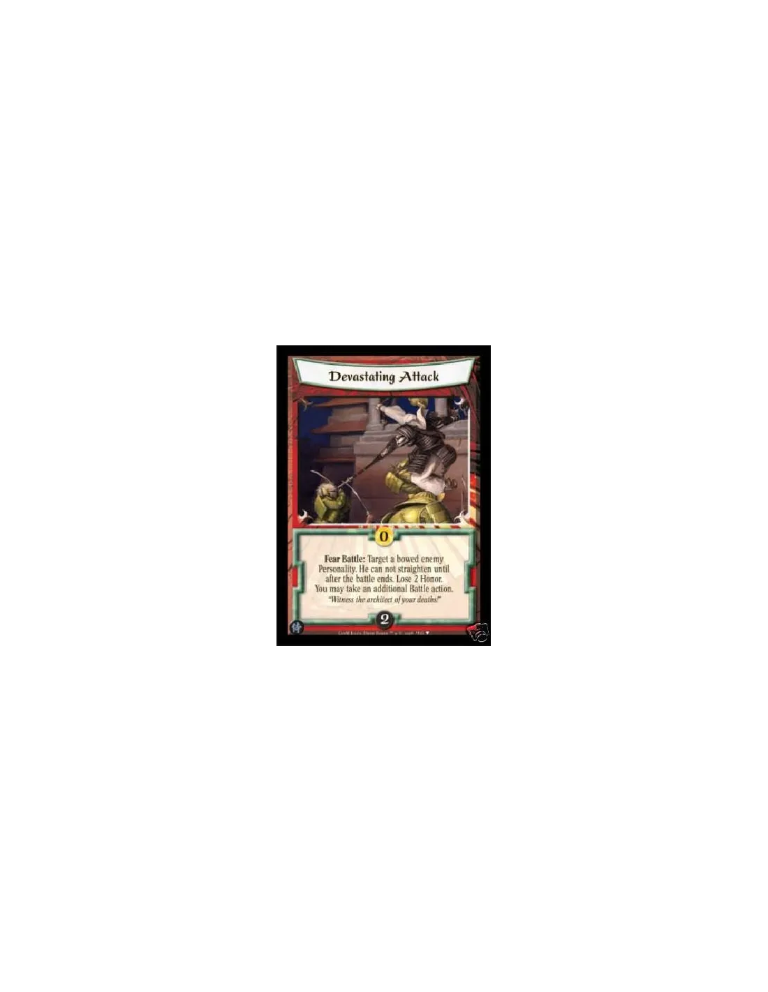 Fear Battle: Target a bowed enemy Personality. He can not straighten until after the battle ends. Lose 2 Honor. You may take an additional Battle action.