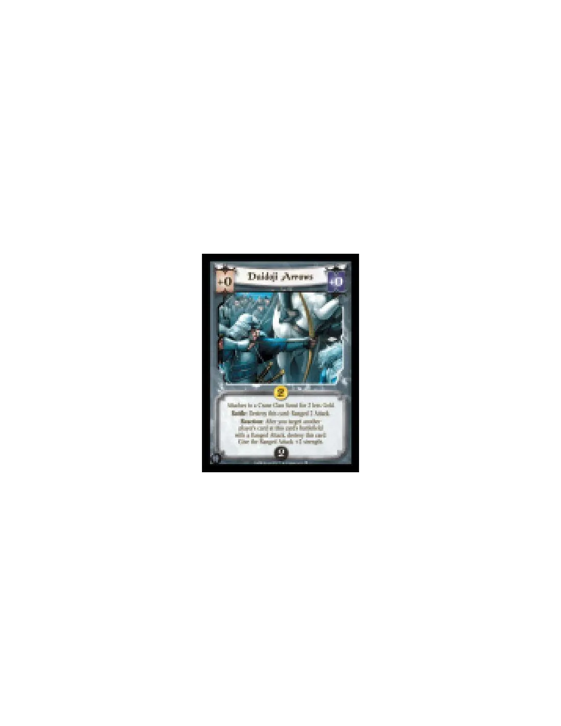 Attaches to a Crane Clan Scout for 2 less Gold. Battle: Destroy this card: Ranged 2 Attack. Reaction: After you target another player's card at this card's battlefield with a Ranged Attack, destroy this card: Give the Ranged Attack +2 Strength.
