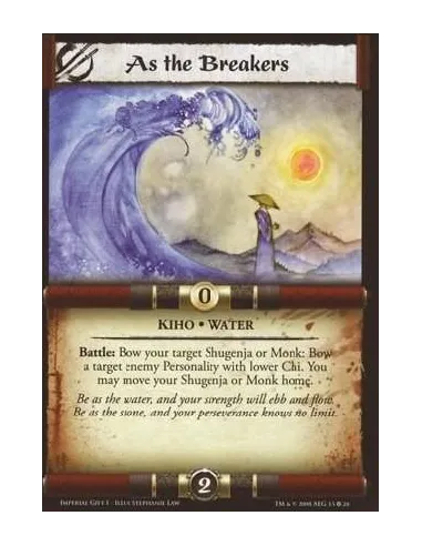 Kiho Water Battle: Bow your target Shugenja or Monk Personality: Bow a target enemy Personality with lower Chi. You may move your Shugenja or Monk home.