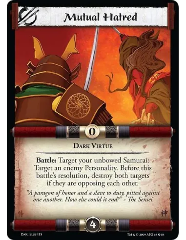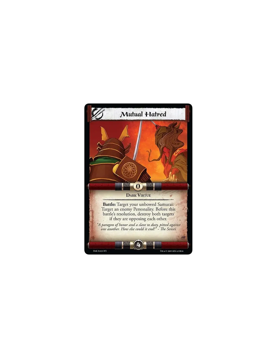 Dark Virtue Battle: Target your unbowed Samurai: Target an enemy Personality. Before this battle's resolution, destroy both targets if they are opposing each other.
