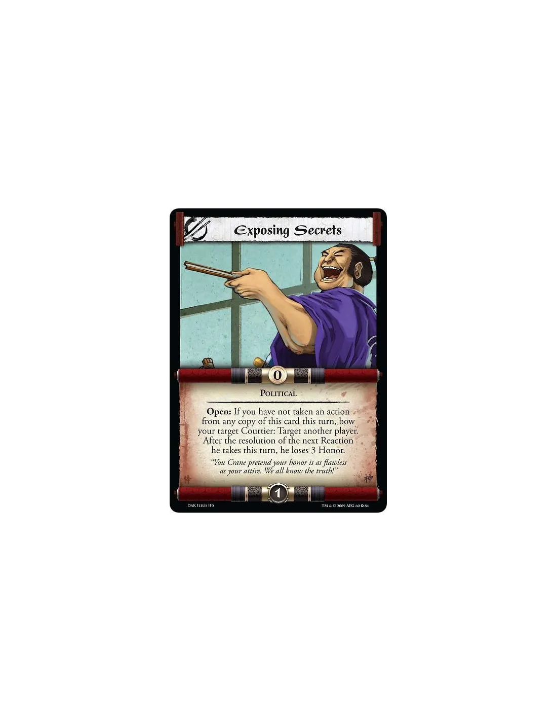 Political Open: If you have not taken an action from any copy of this card this turn, bow your target Courtier: Target another player. After the resolution of the next Reaction he takes this turn, he loses 3 Honor