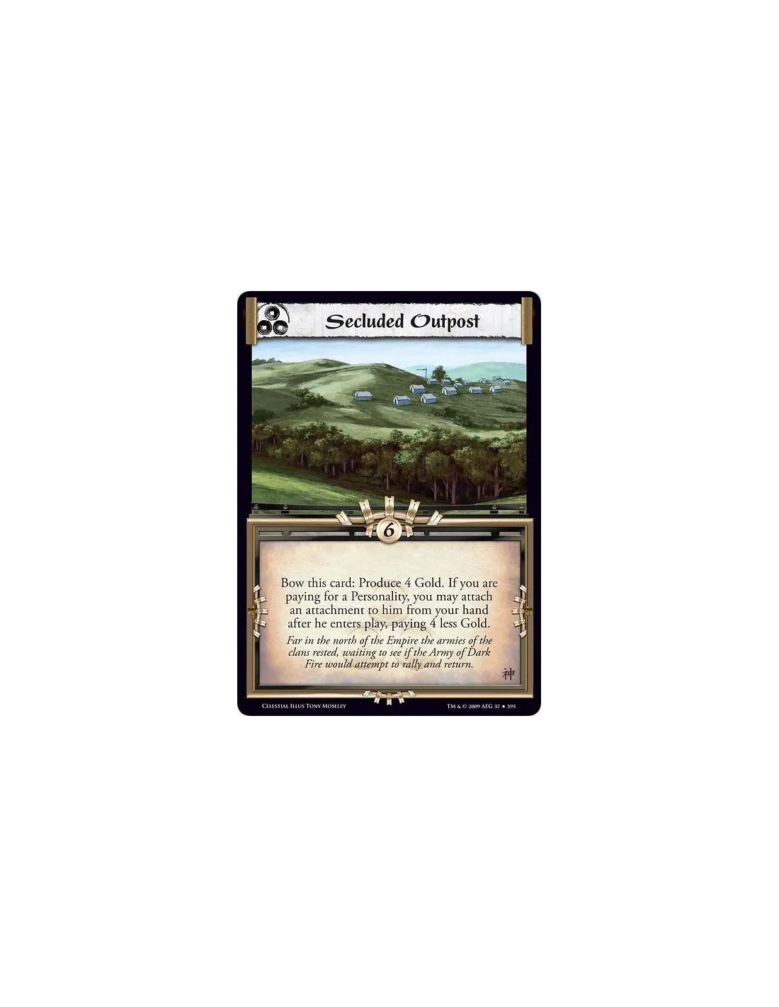 Bow this card: Produce 4 Gold. If you are paying for a Personality, you may attach an attachment to him from your hand after he enters play, paying 4 less Gold.