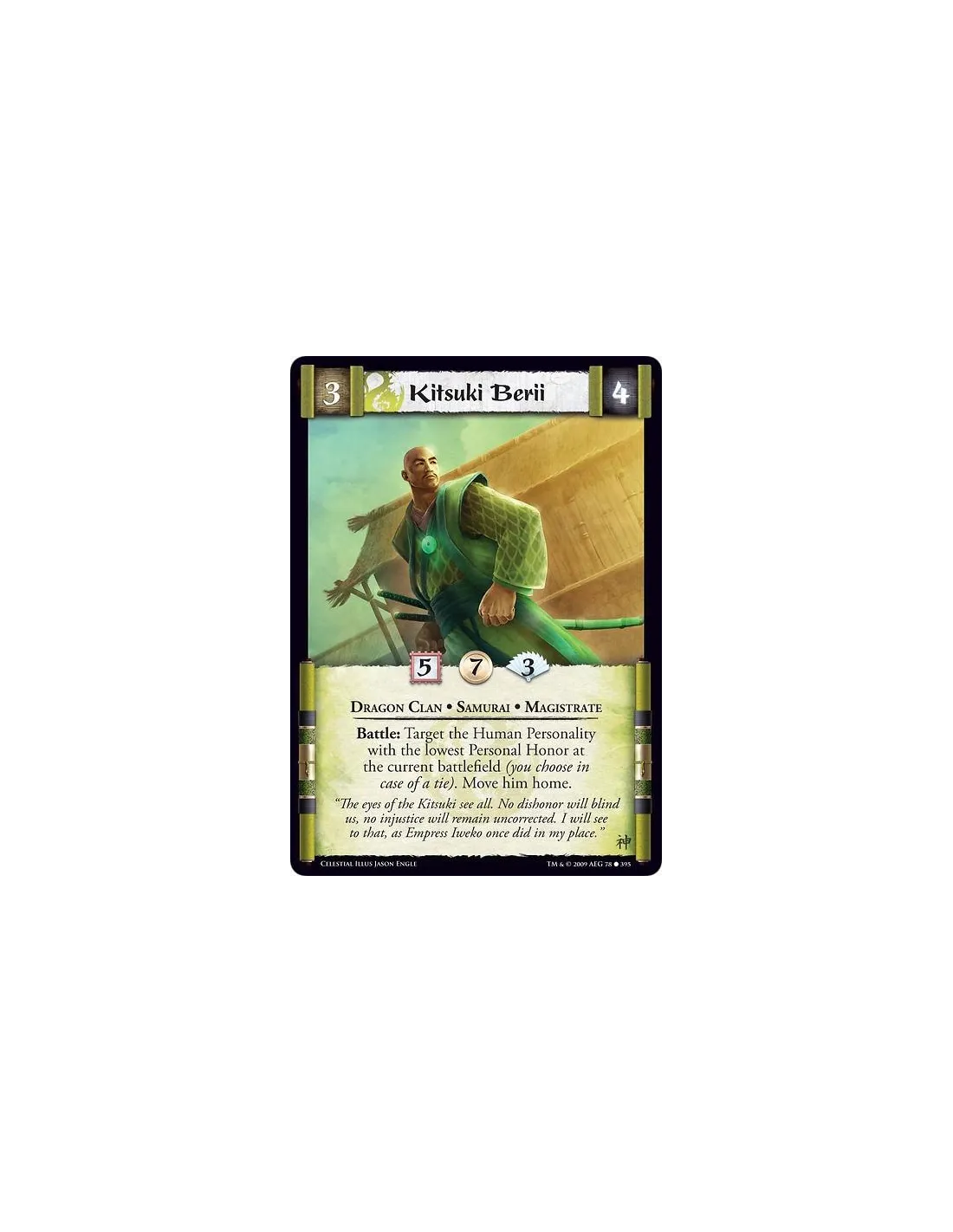 Dragon Clan • Samurai • Magistrate Battle: Target the Human Personality with the lowest Personal Honor at the current battlefield (you choose in case of a tie). Move him home.