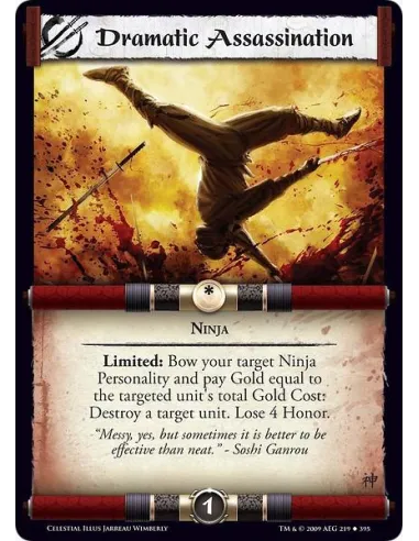 Ninja Limited: Bow your target Ninja Personality and pay Gold equal to the targeted unit's total Gold Cost: Destroy a target unit. Lose 4 Honor.