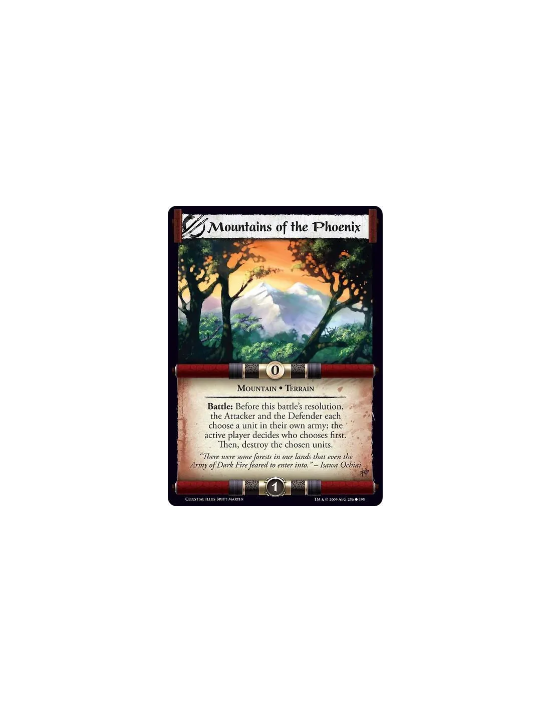 Mountain • Terrain Battle: Before this battle’s resolution, the Attacker and the Defender each choose a unit in their own army; the active player decides who chooses first. Then, destroy the chosen units.