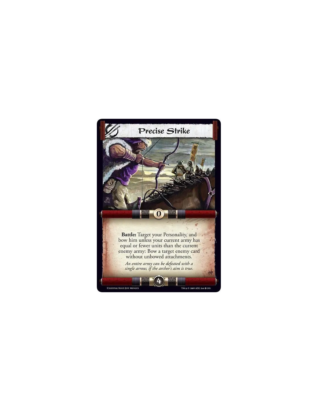 Battle: Target your Personality, and bow him unless your current army has equal or fewer units than the current enemy army: Bow a target enemy card without unbowed attachments.