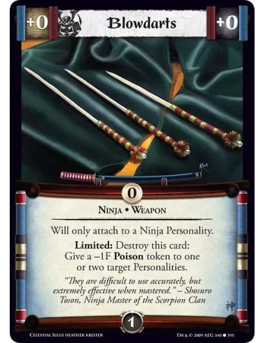 Ninja • Weapon Will only attach to a Ninja Personality. Limited: Destroy this card: Give a -1F Poison token to one or two target Personalities.