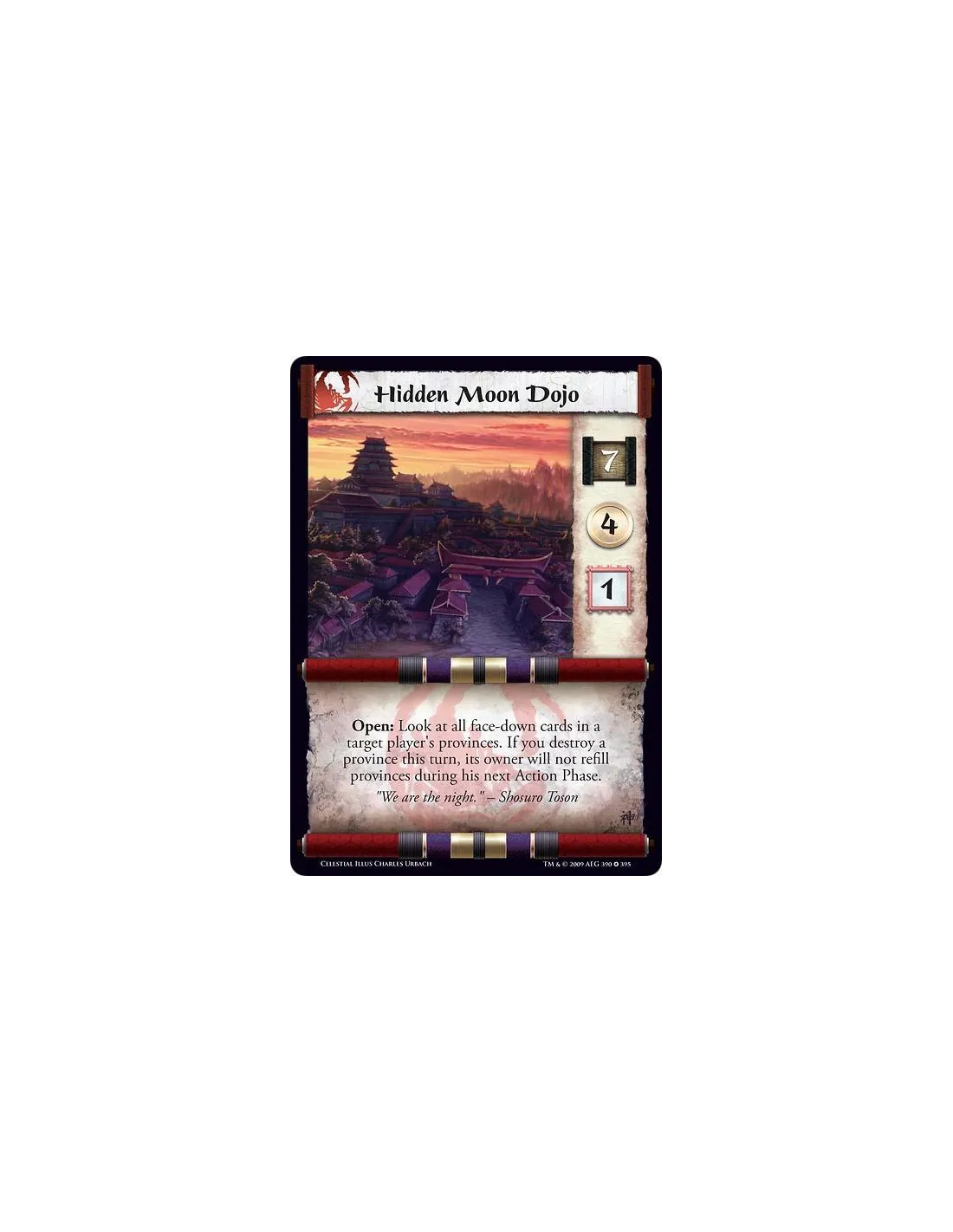 Open: Look at all face-down cards in a target player's provinces. If you destroy a province this turn, its owner will not refill provinces during his next Action Phase.