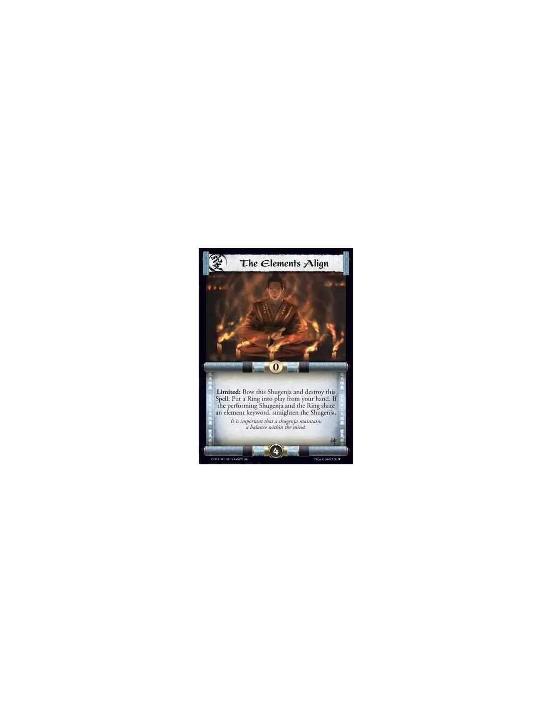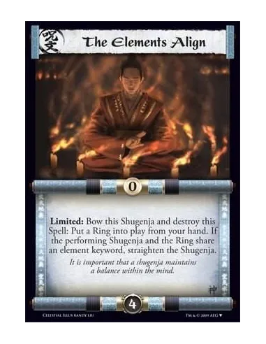 Limited: Bow this Shugenja and destroy this Spell: Put a Ring into play from your hand. If the performing Shugenja and the Ring share an element keyword, straighten the Shugenja.