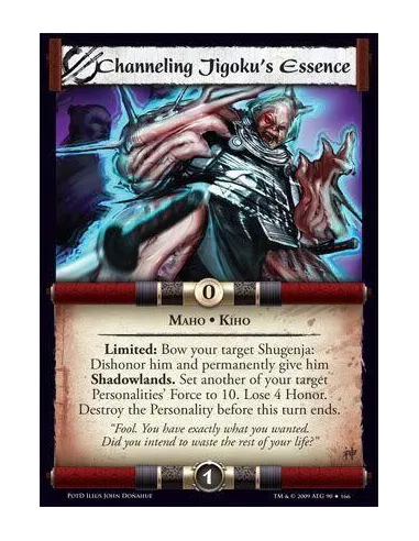 Maho • Kiho Limited: Bow your target Shugenja: Dishonor him and permanently give him Shadowlands. Set another of your target Personalities’ Force to 10. Lose 4 Honor. Destroy the Personality before this turn ends.