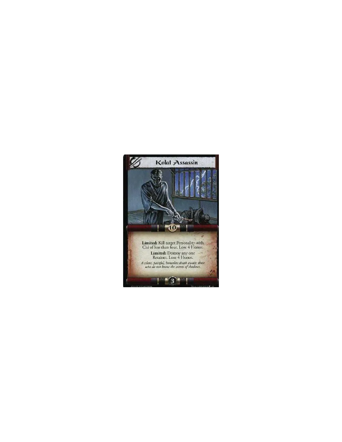 Limited: Destroy a Personality with Chi of less than four. Lose 4 Honor. Limited: Destroy a Retainer. Lose 4 Honor.