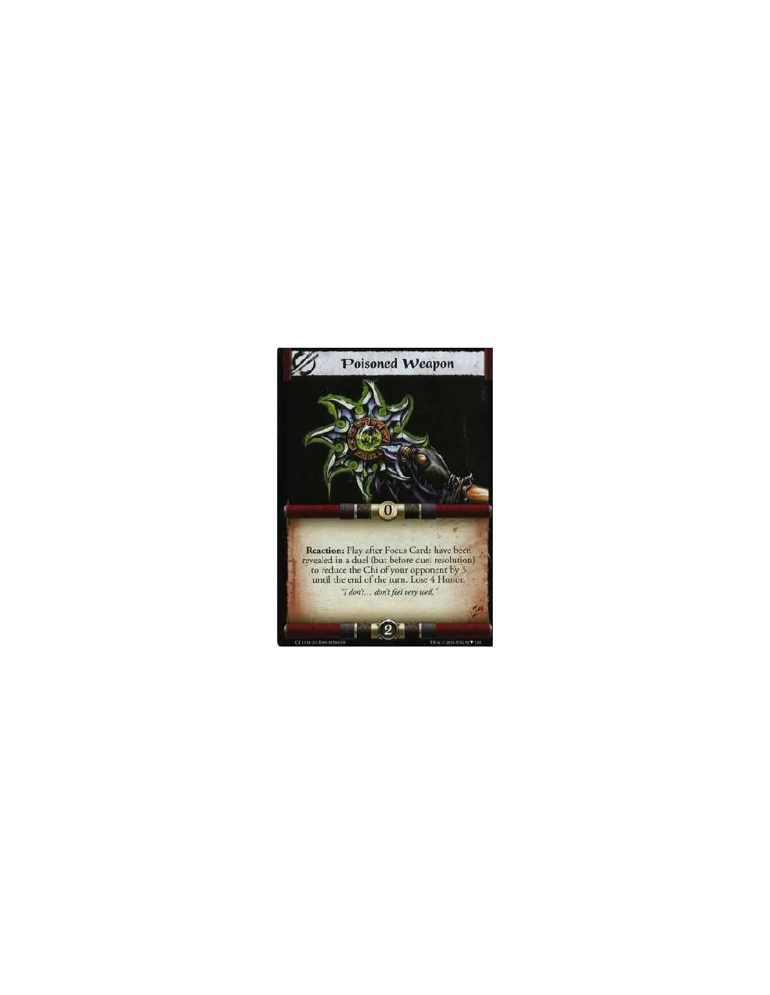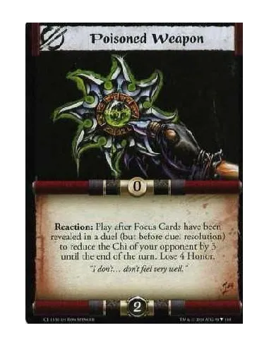Reaction: Play after Focus Cards have been revealed in a duel (but before duel resolution) to reduce the Chi of your opponent by 3 until the end of the turn. Lose 4 Honor.