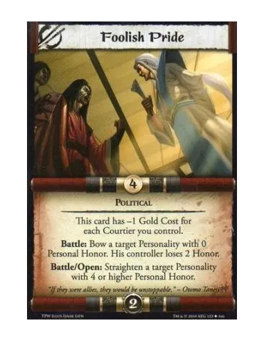 Political This card has -1 Gold Cost for each Courtier you control.Battle: Bow a target Personality with 0 Personal Honor. His controller loses 2 Honor. Battle/Open: Straighten a target Personality with 4 or higher Personal Honor.