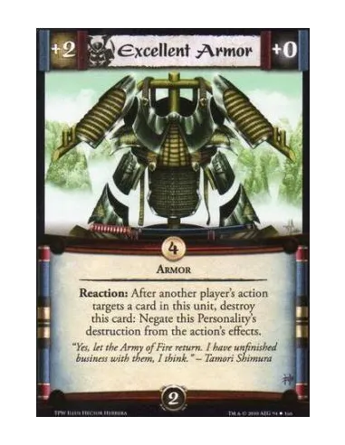 Armor Reaction: After another player’s action targets a card in this unit, destroy this card: Negate this Personality’s destruction from the action’s effects.