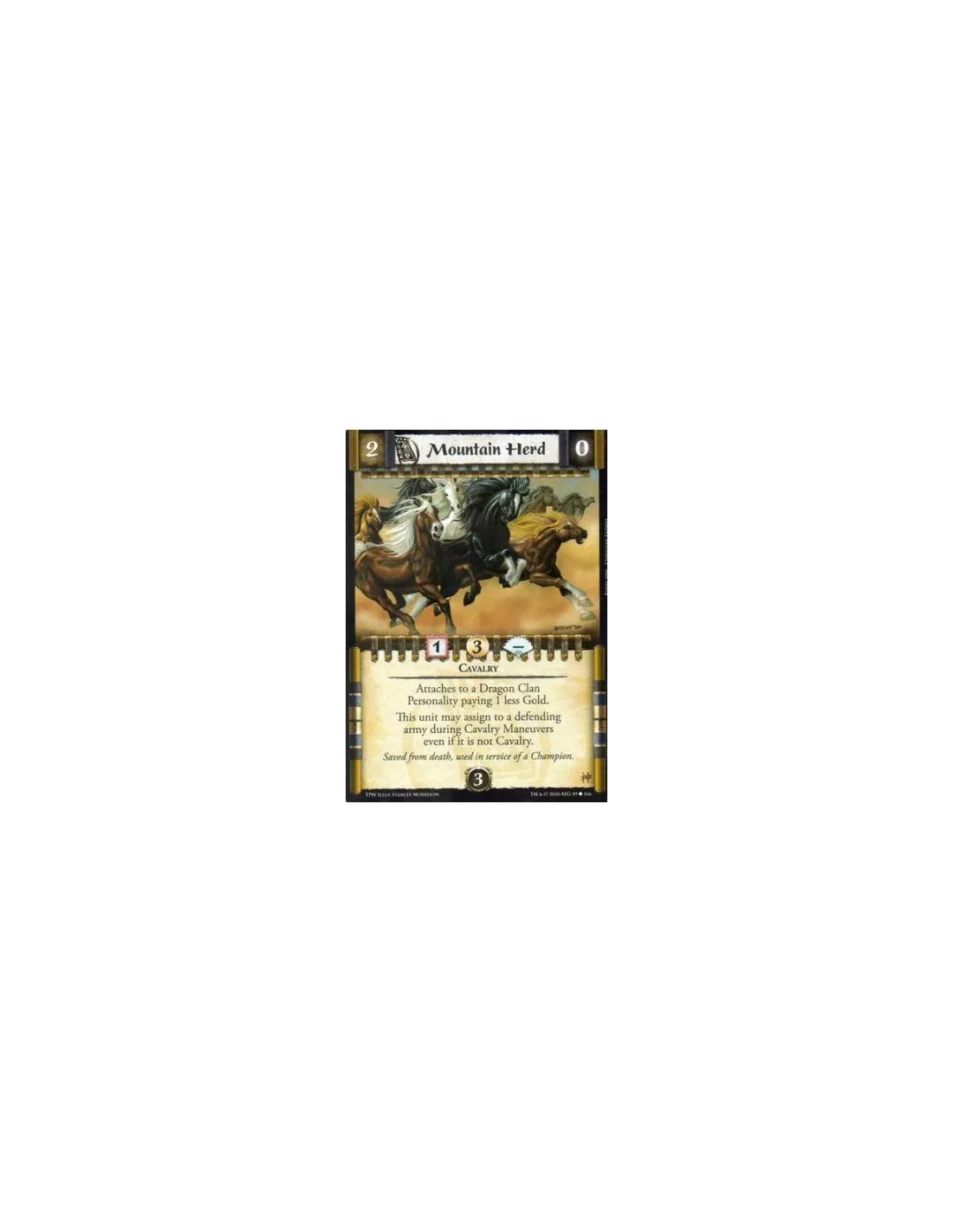 Cavalry Attaches to a Dragon Clan Personality paying 1 less Gold. This unit may assign to a defending army during Cavalry Maneuvers even if it is not Cavalry.
